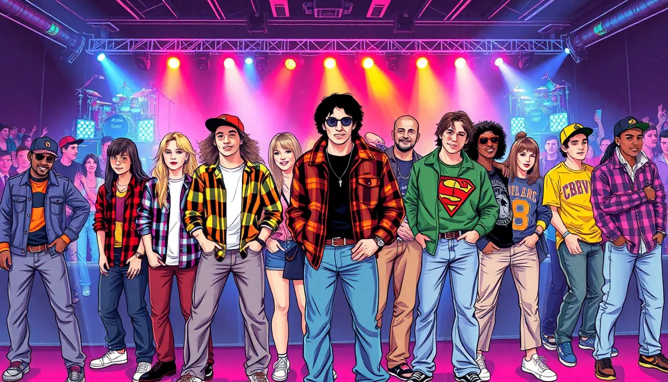 Celebrities significantly shaped 90’s fashion choices. Iconic figures like Kurt Cobain popularized the grunge look, inspiring countless fans. Meanwhile, the Spice Girls promoted “girl power” through their colorful, eclectic outfits. Will Smith’s character in “The Fresh Prince of Bel-Air” showcased bold patterns and oversized fits, leaving a lasting imprint on fashion trends. Jennifer Aniston, through her role in “Friends,” made layered hairstyles and casual chic attire fashionable. Each of these influencers contributed to defining a generation’s aesthetic, making fashion a key aspect of 90’s pop culture.